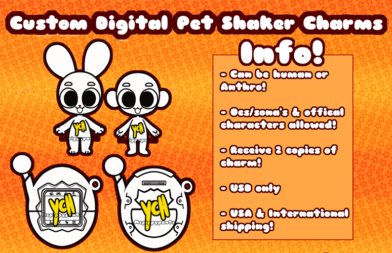 ⭐ Customers will receive 1 copy of any charm they order.⭐ Up to 1 character per single Charm⭐ Along with base price, customers will also be responsible for shipping costs from me to customer - 8 US Domestic / 15 International⭐ Slots for this next charm order will be limited. I will email you if I accept your commission. You can contact me through my email [email protected]